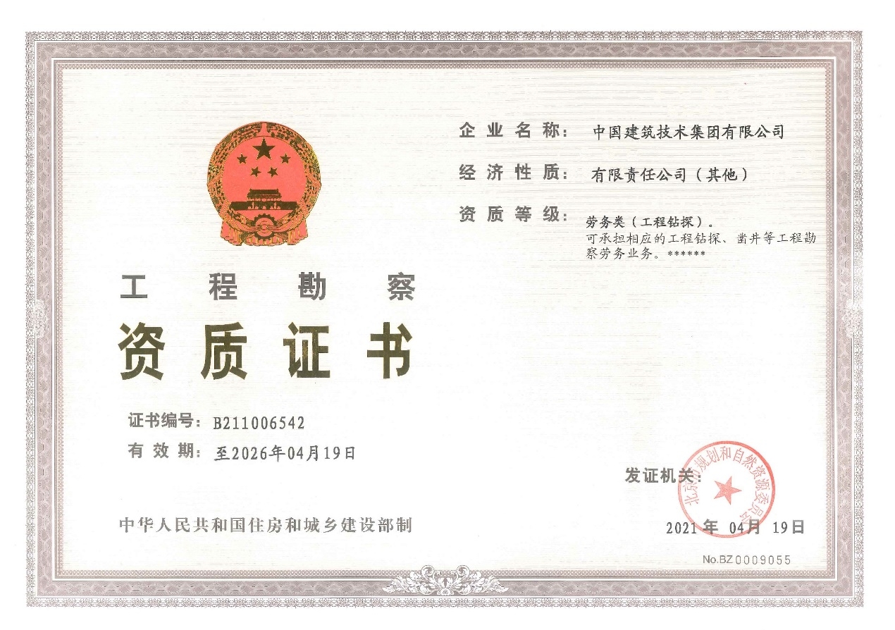 ? ? ? ?4月19日,集團(tuán)公司獲得了北京市規(guī)劃和自然資源委員會(huì)頒發(fā)的工程勘察勞務(wù)類(工程鉆探)資質(zhì)證書。