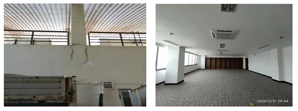 馬爾代夫外交部辦公樓是我國的援建項目,位于首都馬累,近幾年陸續(xù)出現墻體地面裂縫、材料老化腐蝕、建材質量缺陷等問題。設計九所承接該項目后高度重視,2017年至2019年,派項目組三次赴馬調研,通過沉降監(jiān)測、結構檢測鑒定并結合現場踏勘,設計師研判出了裂縫成因,并結合馬爾代夫氣候潮熱以及辦公樓緊鄰海岸線的特點,將設計改造的重點聚焦在防鹽霧腐蝕,系統(tǒng)更新,提升建筑物耐久性上。項目組還積極走訪當地中資企業(yè)施工工地和建材市場,了解當地常用建筑構造措施和建材市場產品種類。