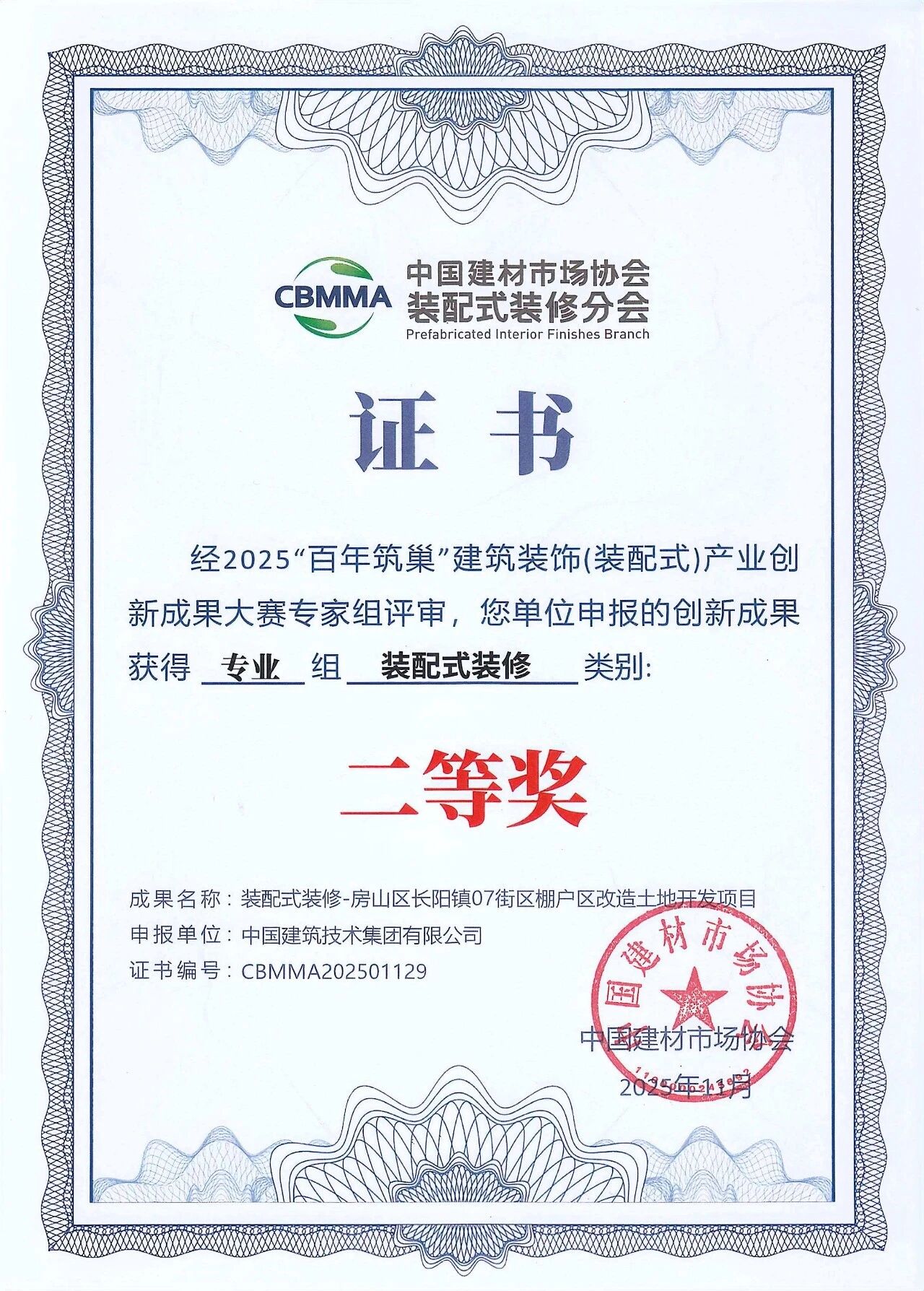 11月13日,由中國建材市場協(xié)會、中國建材市場協(xié)會裝配式裝修分會主辦的2025首屆裝配式裝修產(chǎn)業(yè)大會在浙江海寧會展中心舉行。中國建技所屬三個項目在大會同期舉辦的2025“百年筑巢”建筑裝飾(裝配式)產(chǎn)業(yè)創(chuàng)新成果大賽中獲獎。