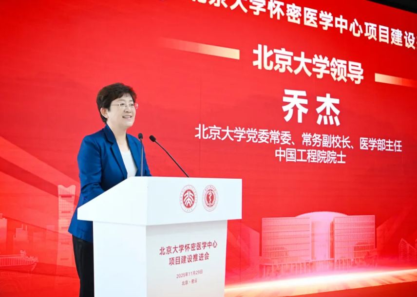 喬杰在講話中表示,站在“十四五”收官與“十五五”開局關鍵節(jié)點,北京大學懷密醫(yī)學中心作為北大醫(yī)學未來發(fā)展的重要戰(zhàn)略,承載著北大醫(yī)學城、世界醫(yī)學谷構想。中心以創(chuàng)建世界一流醫(yī)學教育、前沿交叉研究和創(chuàng)新轉(zhuǎn)化“三個中心”為目標,助力前沿交叉研究與科研產(chǎn)業(yè)融合,積極服務首都及密云發(fā)展,為北京國際科創(chuàng)中心與國家醫(yī)藥衛(wèi)生事業(yè)注入北大醫(yī)學新動能。
