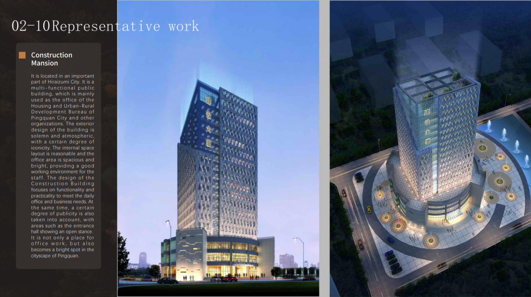 平泉市建設(shè)大廈在地標(biāo)性建筑設(shè)計中的重要實踐。他通過現(xiàn)代建筑語言與地域文化的結(jié)合,打造出一座兼具功能性與象征意義的城市地標(biāo),展現(xiàn)了其在公共建筑設(shè)計中的深厚造詣。(平泉市建設(shè)大廈)