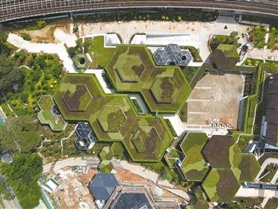 近年來,新加坡注重應(yīng)對氣候變化,不斷提高建筑的環(huán)境可持續(xù)標(biāo)準(zhǔn),對綠色建筑標(biāo)志認(rèn)證設(shè)置了最高等級(jí)——綠色標(biāo)志白金獎(jiǎng)。三巴旺綜合社區(qū)中心項(xiàng)目以取得綠色標(biāo)志白金獎(jiǎng)為目標(biāo),將綠色環(huán)保理念貫穿于項(xiàng)目設(shè)計(jì)和施工的各個(gè)環(huán)節(jié)。中心的建筑屋頂實(shí)現(xiàn)了無土植物全覆蓋,在新加坡常年炎熱的氣候下,這種設(shè)計(jì)不僅外觀上綠意盎然,還可以起到降溫、吸音、降噪等作用;園林區(qū)域的降雨排水系統(tǒng)運(yùn)用石塊、碎石、植物等天然材料,將雨水匯集起來并層層過濾沉降泥沙,營造出天然河道景象,既美觀又能凈化水源;項(xiàng)目還采用了大量預(yù)制構(gòu)件,雖然對施工精度提出了很高的要求,但可以最大程度減少施工中產(chǎn)生的建筑垃圾。