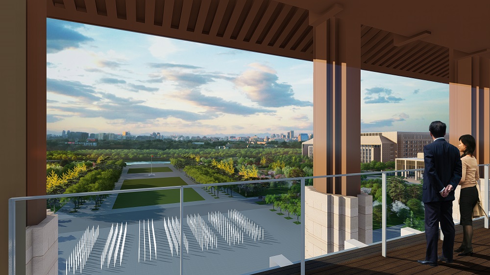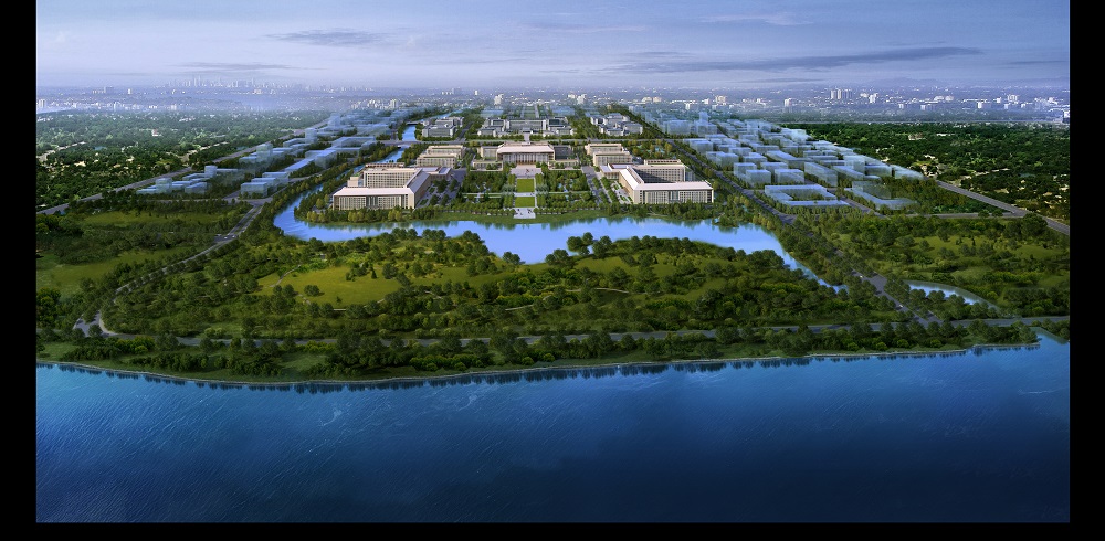 該項目位于北京城市副中心行政辦公區(qū)的核心區(qū)域,在長安街的東延長線上,運潮減河與北運河之間,將成為北京中心城區(qū)功能疏解的重要承接地。行政辦公區(qū)景觀結(jié)構(gòu)為:一條生態(tài)軸貫穿南北,由豐字溝水系和建筑公共綠地組成環(huán)抱行政辦公核心區(qū)的生態(tài)圍合,整體形成全區(qū)山水結(jié)構(gòu)與自然式的園林景觀。