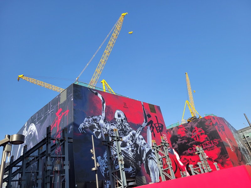 本項目施工內(nèi)容包括2棟樓的拆除、重建、加固、機(jī)電工程、幕墻、電梯安裝與裝飾裝修。項目位于三里屯繁華鬧市區(qū),東臨使館區(qū)、南連南區(qū)商業(yè)區(qū)、西和北側(cè)為住宅區(qū),周邊商業(yè)需正常運(yùn)營,致使白天物料與大型車輛運(yùn)輸受限,運(yùn)輸需在夜間進(jìn)行,因此項目實施只能在非營業(yè)時間開展,且吊裝作業(yè)僅能于每日上午進(jìn)行。此項目對現(xiàn)場安全文明施工要求頗高,同時涉及市政管線、綠化移植、夜間施工、施工占道等大量需與政府部門溝通協(xié)調(diào)之事,且現(xiàn)場無臨時設(shè)施用地。