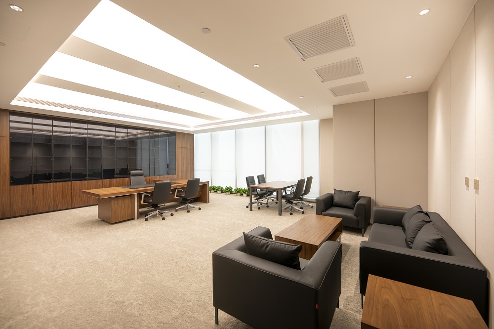 本次改造根據使用單位的需求,在維持建筑外立面和室外景觀的前提下,對原有建筑進行了平面重新布局及裝飾裝修,并根據新的使用功能對機電系統(tǒng)進行了調整。改造后的建筑滿足現(xiàn)行的建筑標準規(guī)范,并滿足使用方的現(xiàn)代辦公需求。以“一級央企、國內一流、具有國際影響力”的大國企業(yè)總部形象服務全國并面向國際舞臺,所以重點打造莊重、現(xiàn)代、統(tǒng)一、大氣、低調、品質的空間特點,使辦公空間代表大國形象、展示央企文化;延續(xù)傳統(tǒng)國企表現(xiàn)出的典型特征,提升內部空間整體品質。圍繞設計理念構思方案,把握規(guī)劃布局的宏觀標準,定位企業(yè)形象,提煉設計手法,營造空間氛圍;對大廳、會議、報告廳、會客、餐廳、辦公等重點空間深化設計匹配一級央企的總部形象。