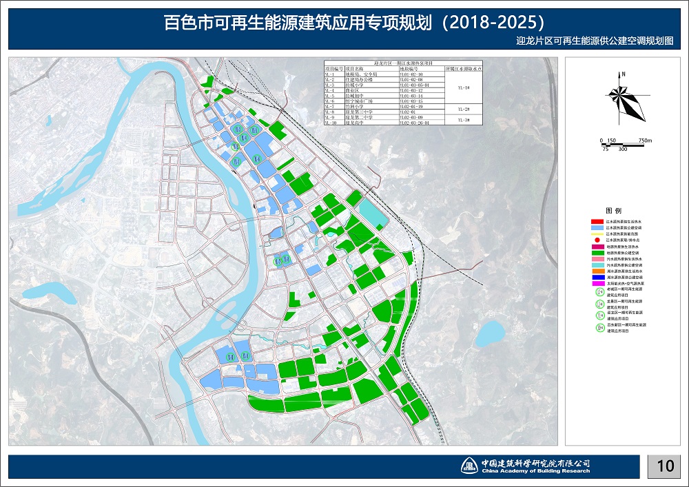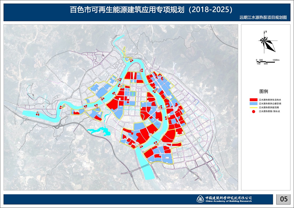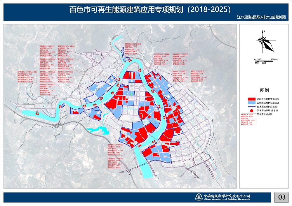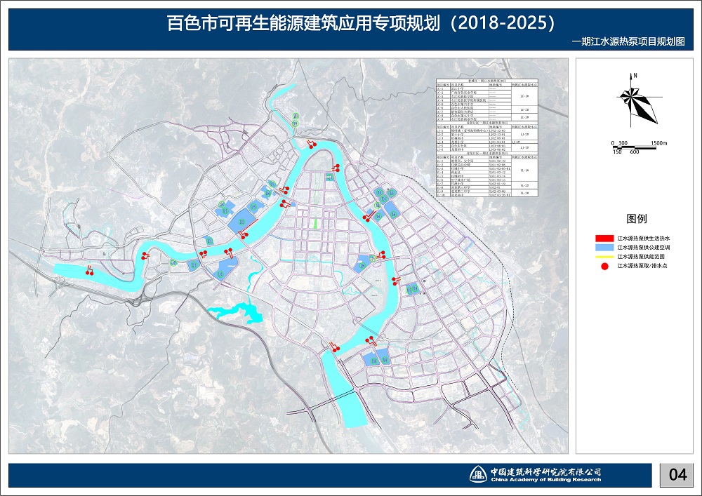 本規(guī)劃大規(guī)模應(yīng)用江水源熱泵。劃針對(duì)百色市獨(dú)特的豐富水源——右江水系,專(zhuān)門(mén)制作江水源熱泵規(guī)劃專(zhuān)篇,研究江水源熱泵效率的各影響因子,以取排水點(diǎn)互不干擾為原則,科學(xué)排布取排水點(diǎn)。并根據(jù)建筑物布置確定江水源熱泵站點(diǎn)位置。