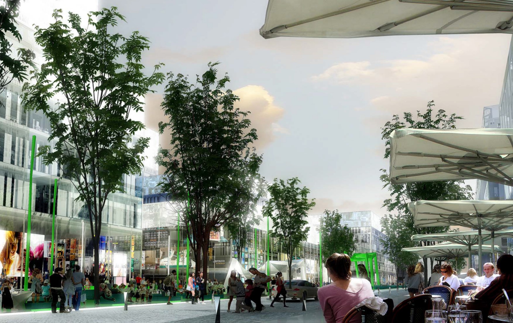 地下空間設置:地下空間由三個部分組成,分別為地下商業(yè)位于鄰近中央廣場和地鐵站的地塊,由地塊紅線分開并在地塊間以地下通道方式連接;底下停車庫設置在每個地塊下;為能夠連接到全部地塊,底下停車庫之間有連接隧道。