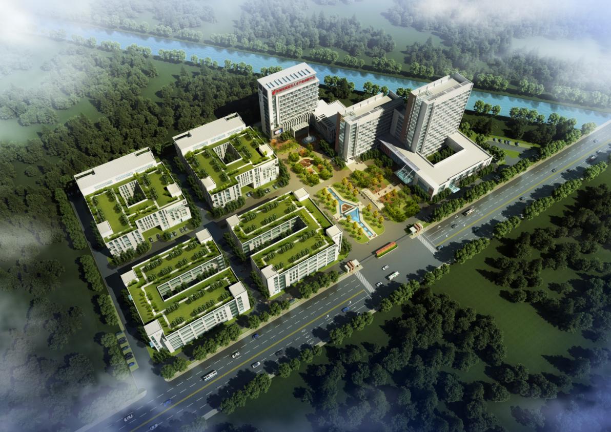 科技園區(qū)主入口設(shè)置在衡山路的中段,研發(fā)辦公和廠房建筑(1#2#3#4#廠房)分設(shè)主入口兩邊,同時(shí)形成了主入口廣場(chǎng):中央廣場(chǎng)布置流通環(huán)繞的景觀水體,暗合高科技產(chǎn)業(yè)“智者近水”的主題。