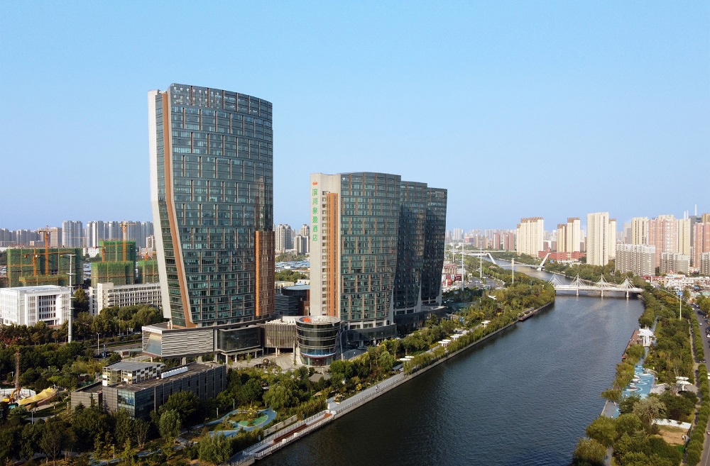 濟南濱河商務中心位于濟南市天橋區(qū)小清河與清河北路之間的狹長街區(qū),東側為規(guī)劃中的濱河綠帶,在中觀尺度上整合融入于基地特有的水路環(huán)境系統之中。
