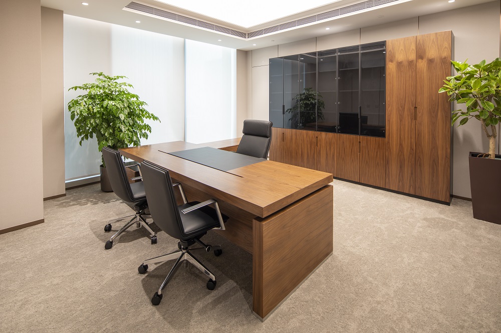 本次改造根據使用單位的需求,在維持建筑外立面和室外景觀的前提下,對原有建筑進行了平面重新布局及裝飾裝修,并根據新的使用功能對機電系統(tǒng)進行了調整。改造后的建筑滿足現(xiàn)行的建筑標準規(guī)范,并滿足使用方的現(xiàn)代辦公需求。以“一級央企、國內一流、具有國際影響力”的大國企業(yè)總部形象服務全國并面向國際舞臺,所以重點打造莊重、現(xiàn)代、統(tǒng)一、大氣、低調、品質的空間特點,使辦公空間代表大國形象、展示央企文化;延續(xù)傳統(tǒng)國企表現(xiàn)出的典型特征,提升內部空間整體品質。圍繞設計理念構思方案,把握規(guī)劃布局的宏觀標準,定位企業(yè)形象,提煉設計手法,營造空間氛圍;對大廳、會議、報告廳、會客、餐廳、辦公等重點空間深化設計匹配一級央企的總部形象。